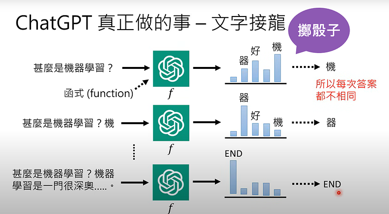 基本上是一個很厲害的機率模型來進行「文字接龍」,就會有一定的「機率」胡說八道。