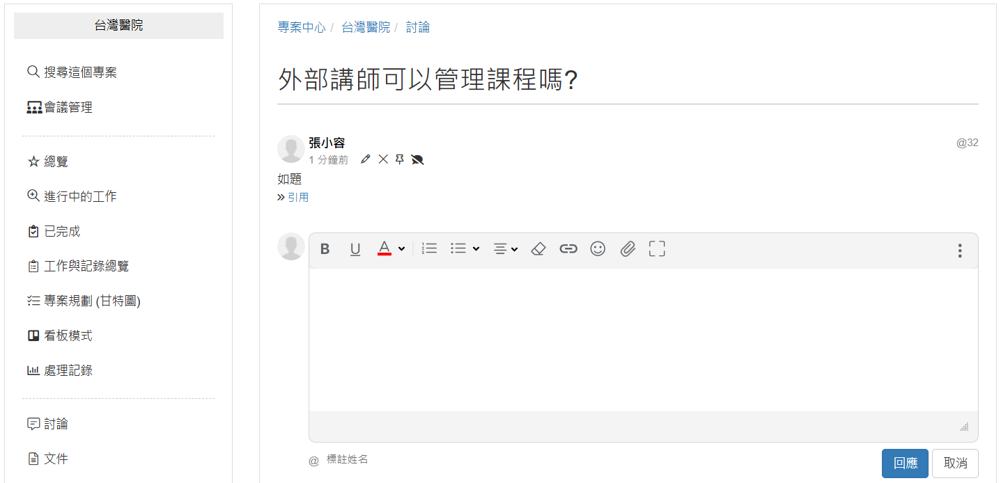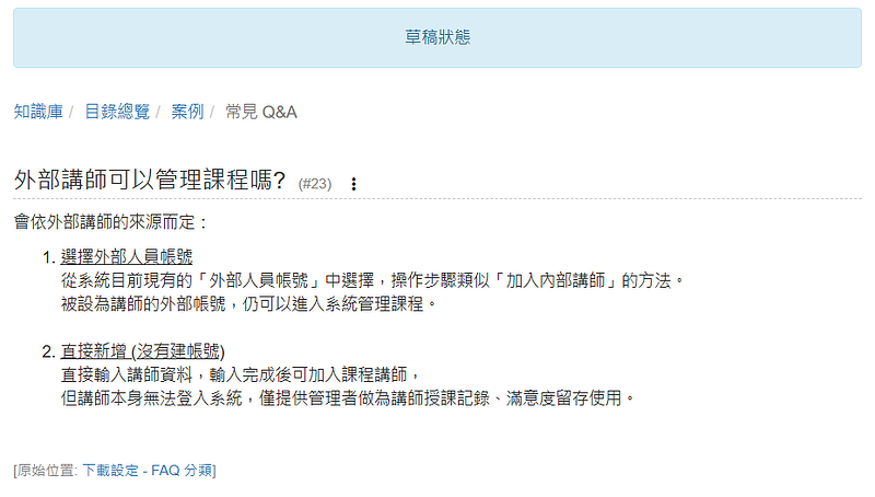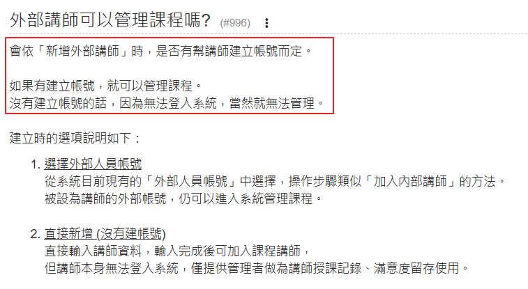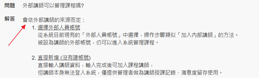 (問題:外部講師可以管理課程嗎?)