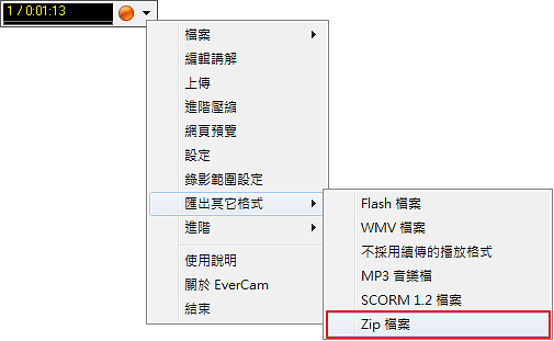 EverCam 匯出成 mp4 後,可以透過其他的軟體將所有檔案壓縮成 zip 檔。