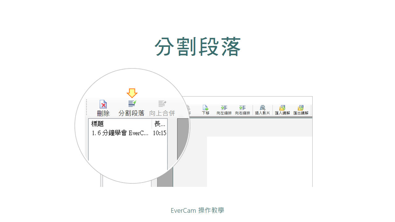 按一下「分割段落」將時間點以後的內容切割成新的段落