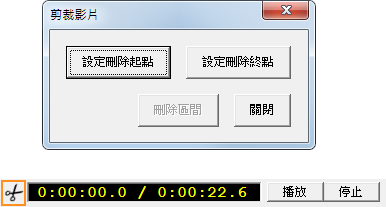 選擇影片段落,點選下方影片時間旁的「剪刀」圖示,
