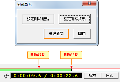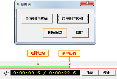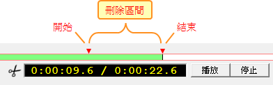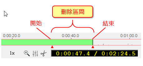 a. 設定要刪除段落的「開始」以及「結束」時間點。