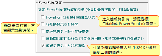 PowerPoint 設定 (使用簡報錄影的相關設定)