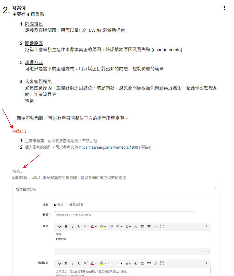 例如問題處理,就適合用 Q&A 的形式,直接對症下藥。