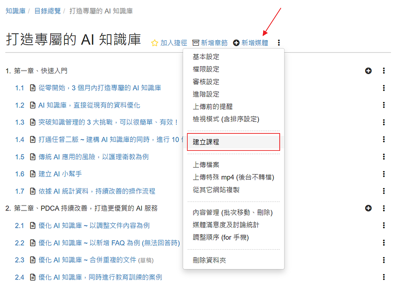 案例寫好之後,就可以透過工具「建立課程」,透過課程中的測驗,進行 10 倍速的經驗傳承。