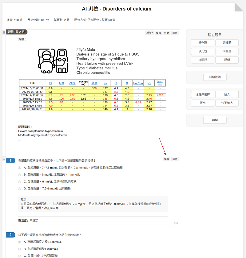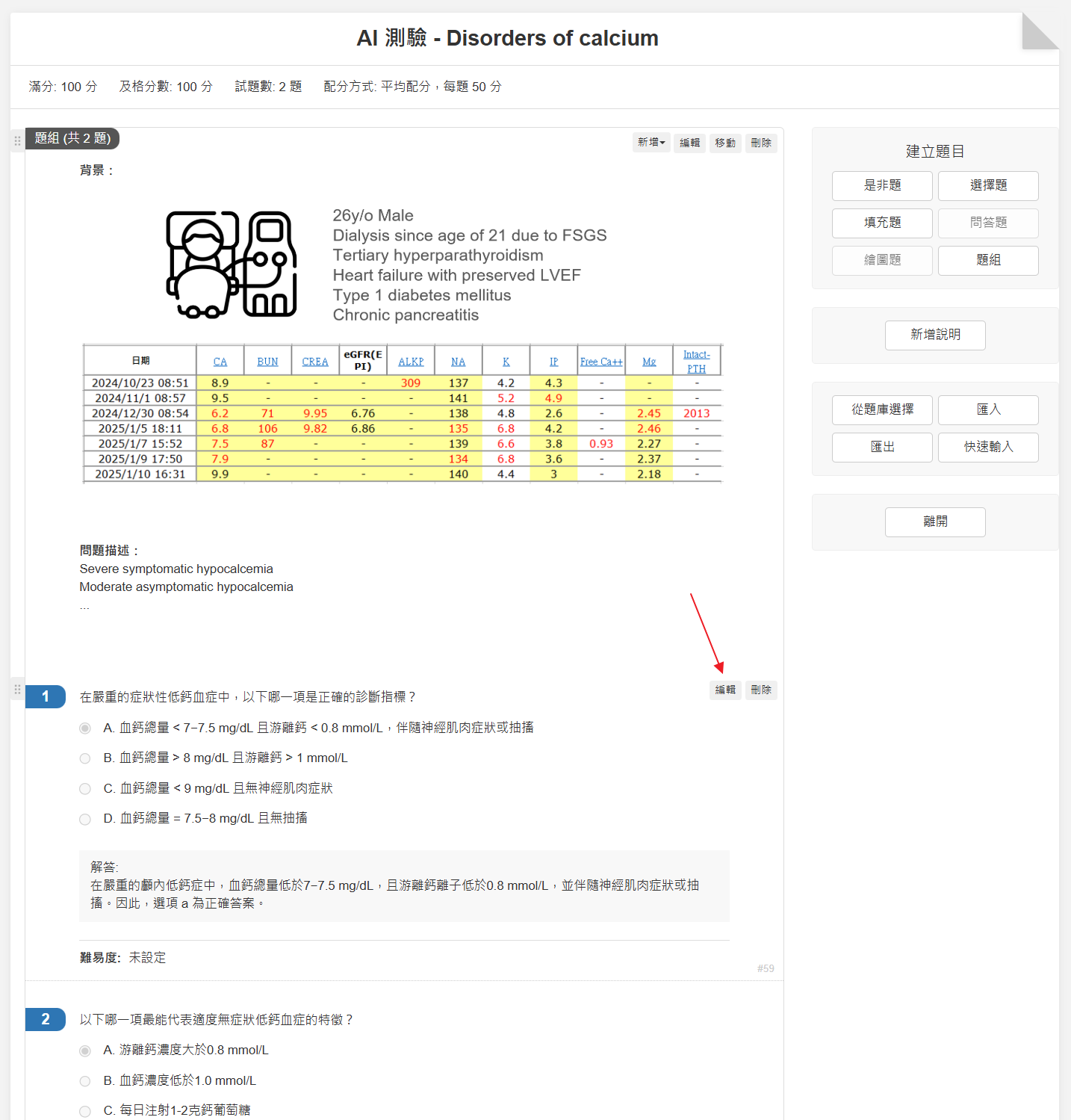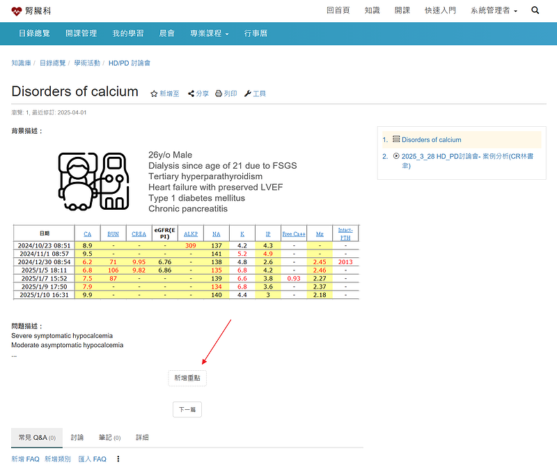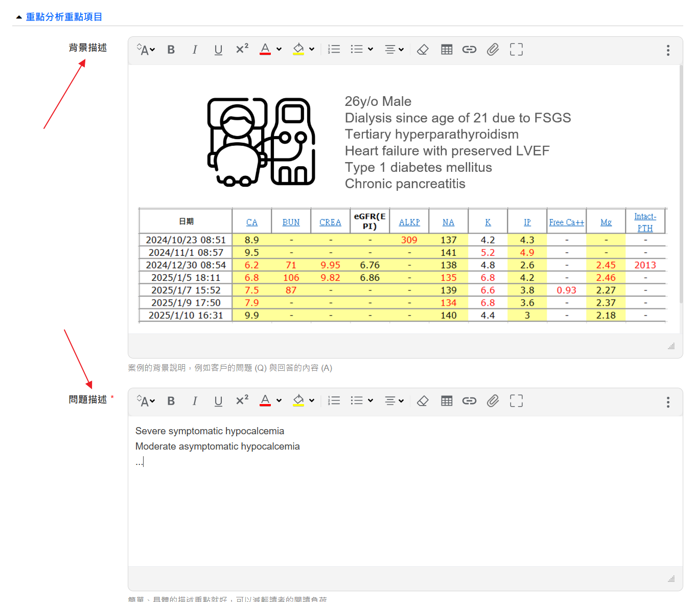- 撰寫病例分析,將每一個分析的重點,用「新增重點」的方式整理