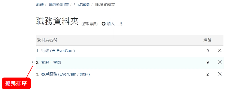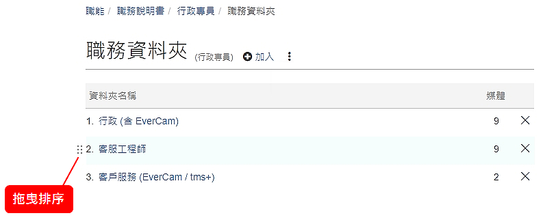 透過「職務資料夾」,就可以建立職務和專屬資料夾的關係。