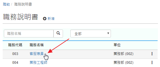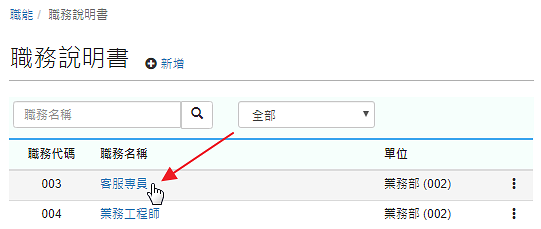 在職務說明書列表的頁面,點擊要設定的職務名稱。