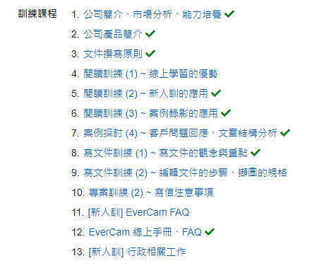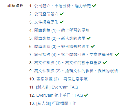 如果已經完成課程,就會在職務說明書中的相關課程打勾。如果是梯次課程,只要任何一個梯次完成都會打勾。