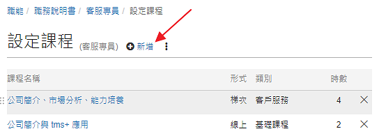職務對應的課程,建議選擇該職務新人「必修」的課程,其他相關課程 (選修),建議放在職能項目對應的課程。