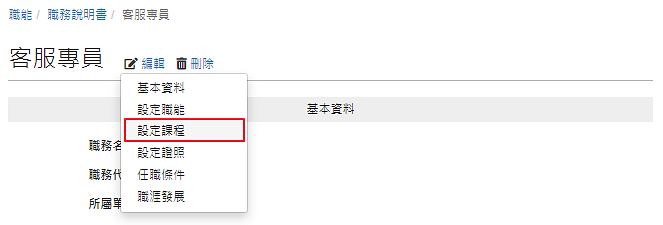 進入職務說明書,在「編輯」下拉選單中,點擊「設定課程」。