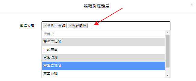 在輸入框,選擇已經建立好的「職務說明書」 (每一份職務說明書代表一個職務)。