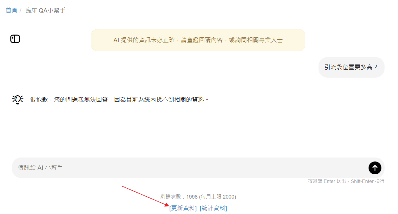 初期因為 AI 知識庫並沒有任何資料,因此 AI 無法回答是正常的喔。
