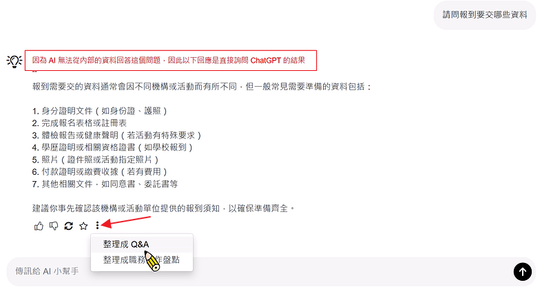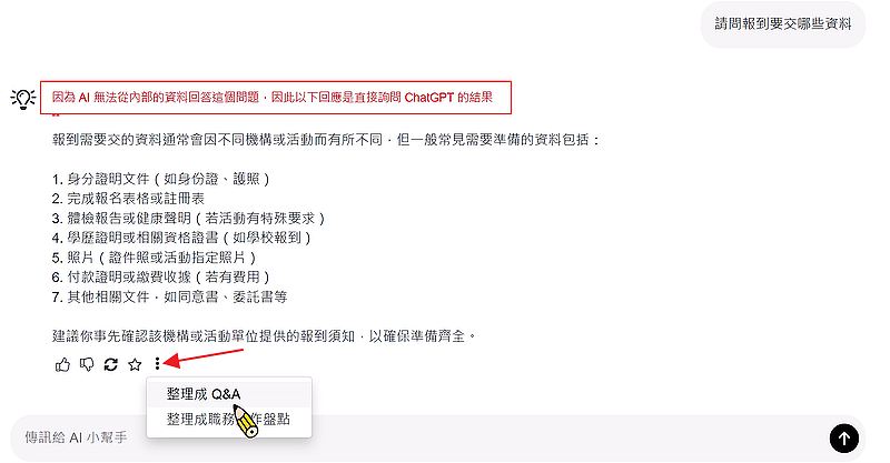 此外,更提供「整理成 FAQ」的儲存功能,