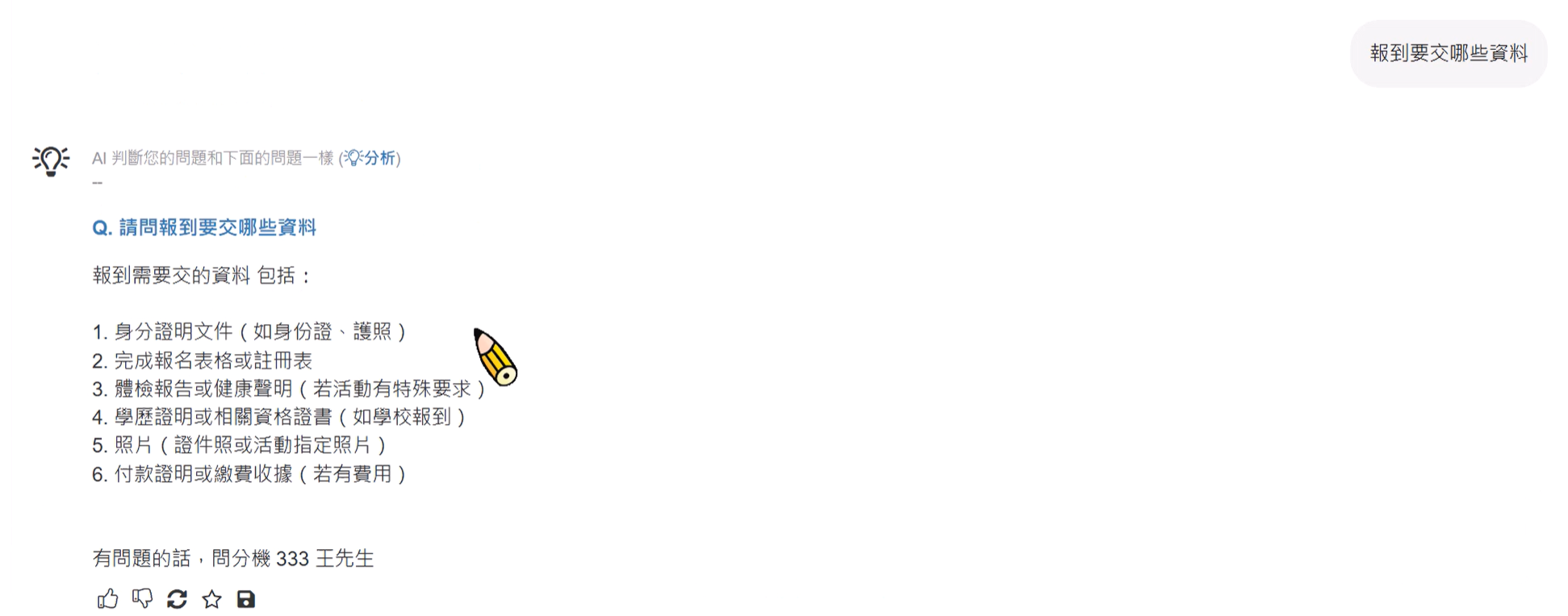 這次 AI 判斷這個問題已經有整理成 FAQ,