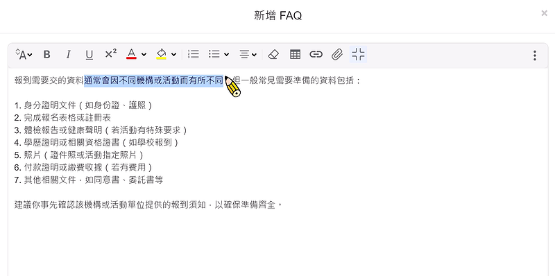AI 「彙整」多篇參考資料時,內容可能不夠精準 (解法:建立 FAQ)
