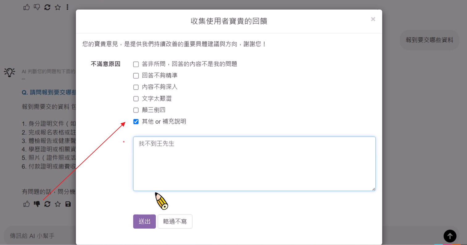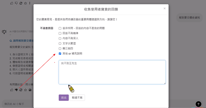 這時候,就可以給「不滿意」的回饋,並反映問題。