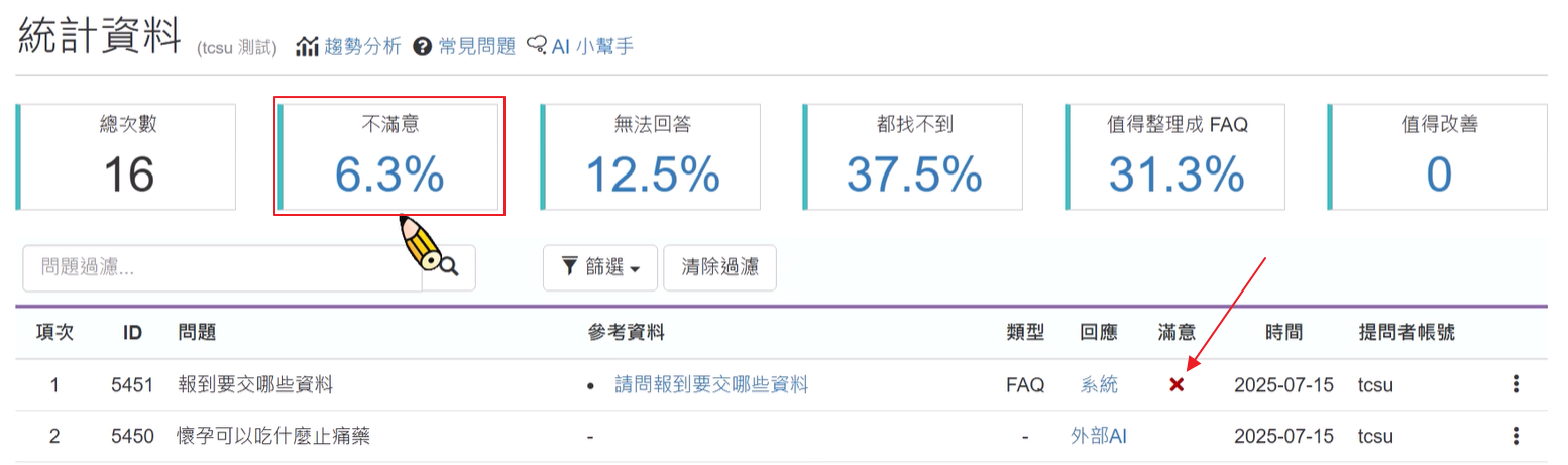 負責單位就可以從這些數據,找到有問題的回應與改善的方向。