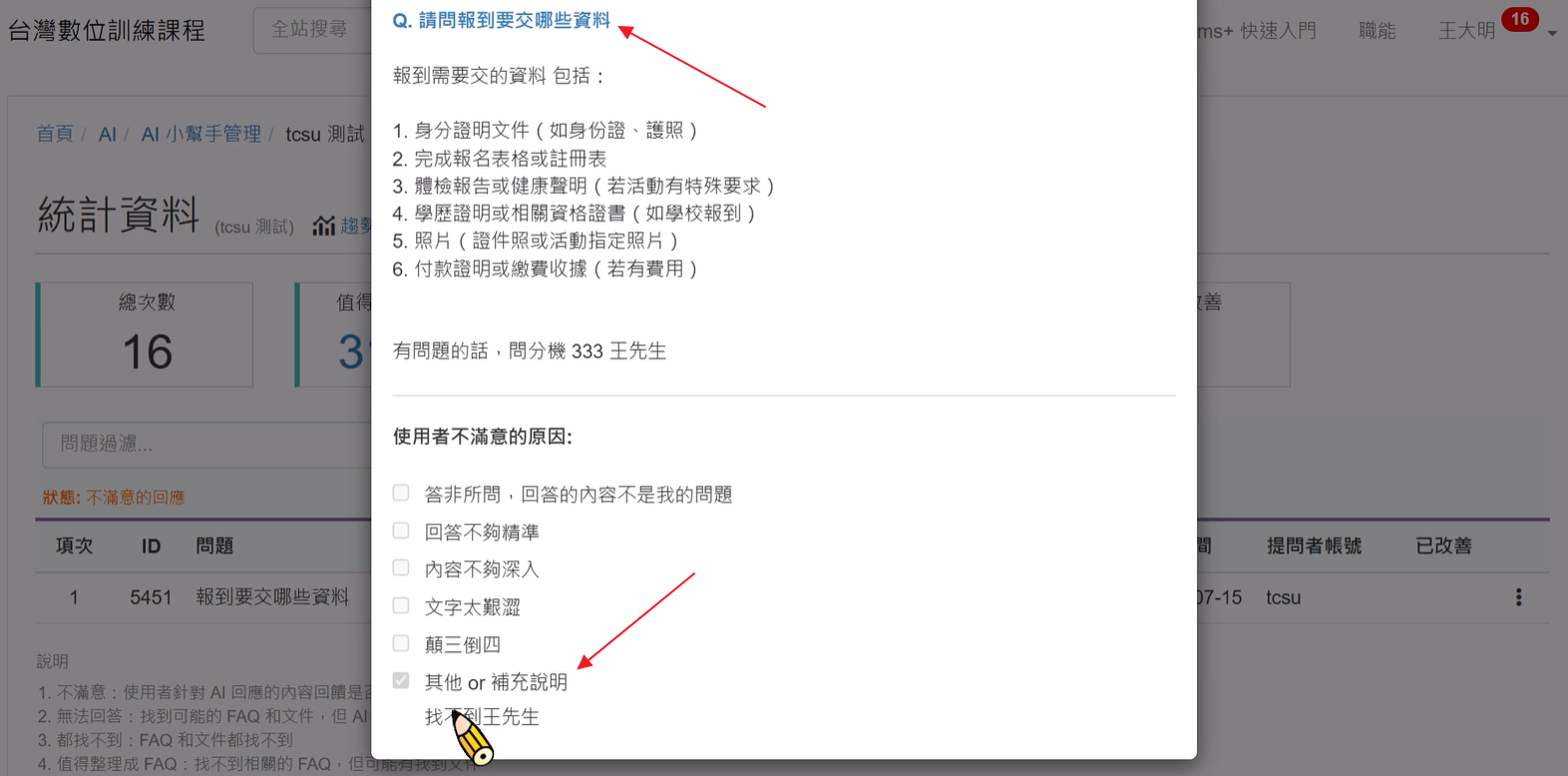 優化 AI 知識庫 ~ 以新增 FAQ 為例 (無法回答時)