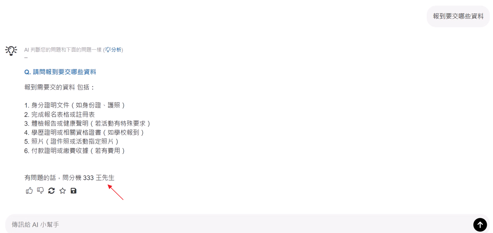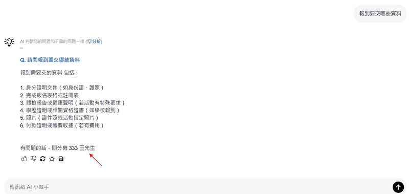 AI 判斷這個問題已經有整理成 FAQ 了,就直接輸出。