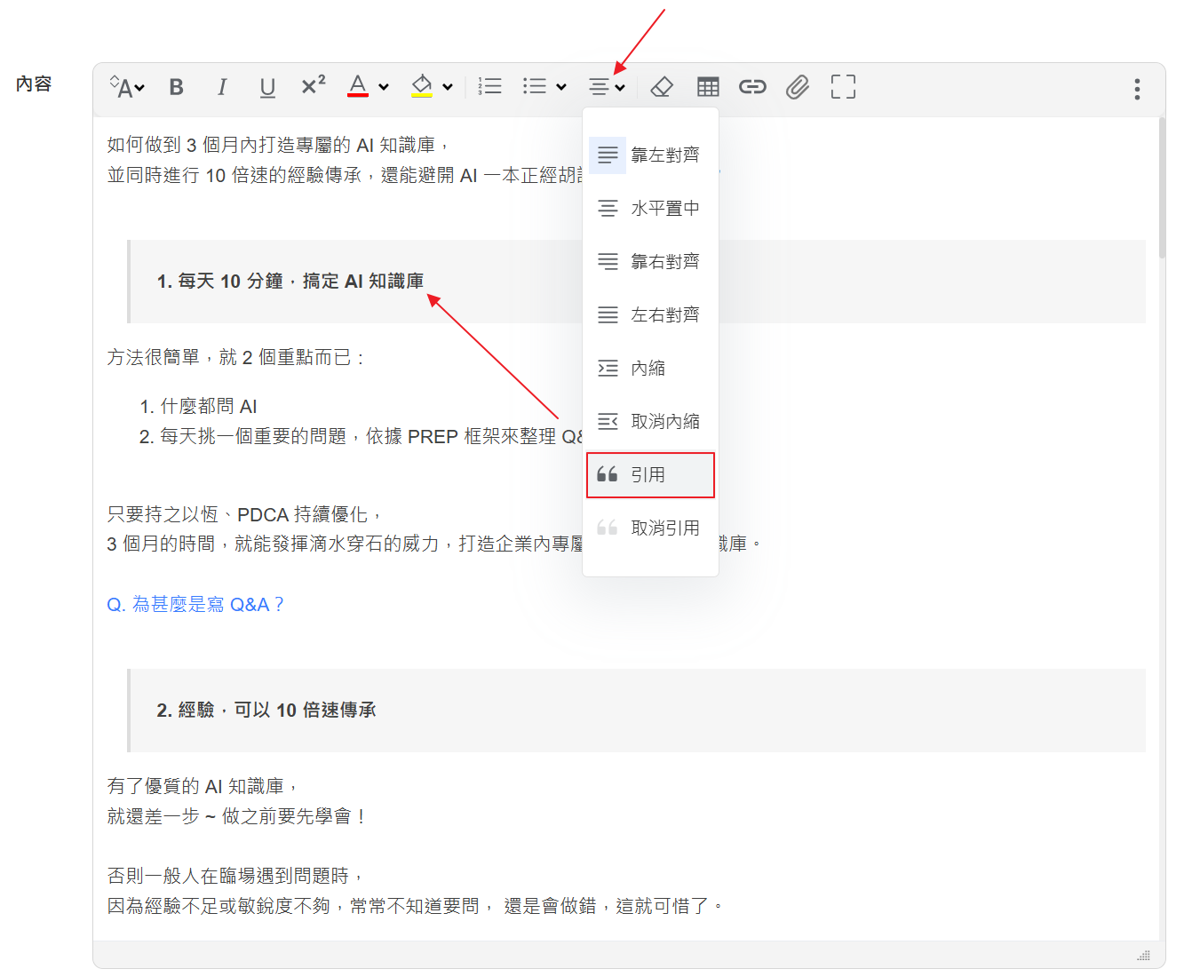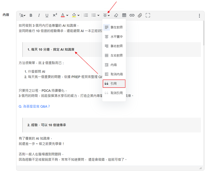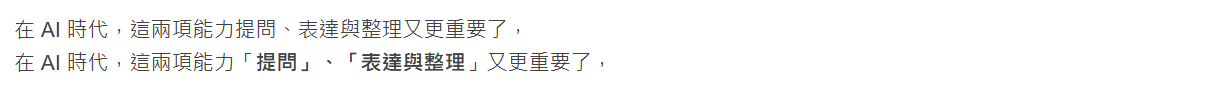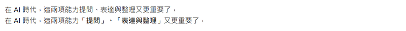利用「引用」的功能來分段,再加上粗體,