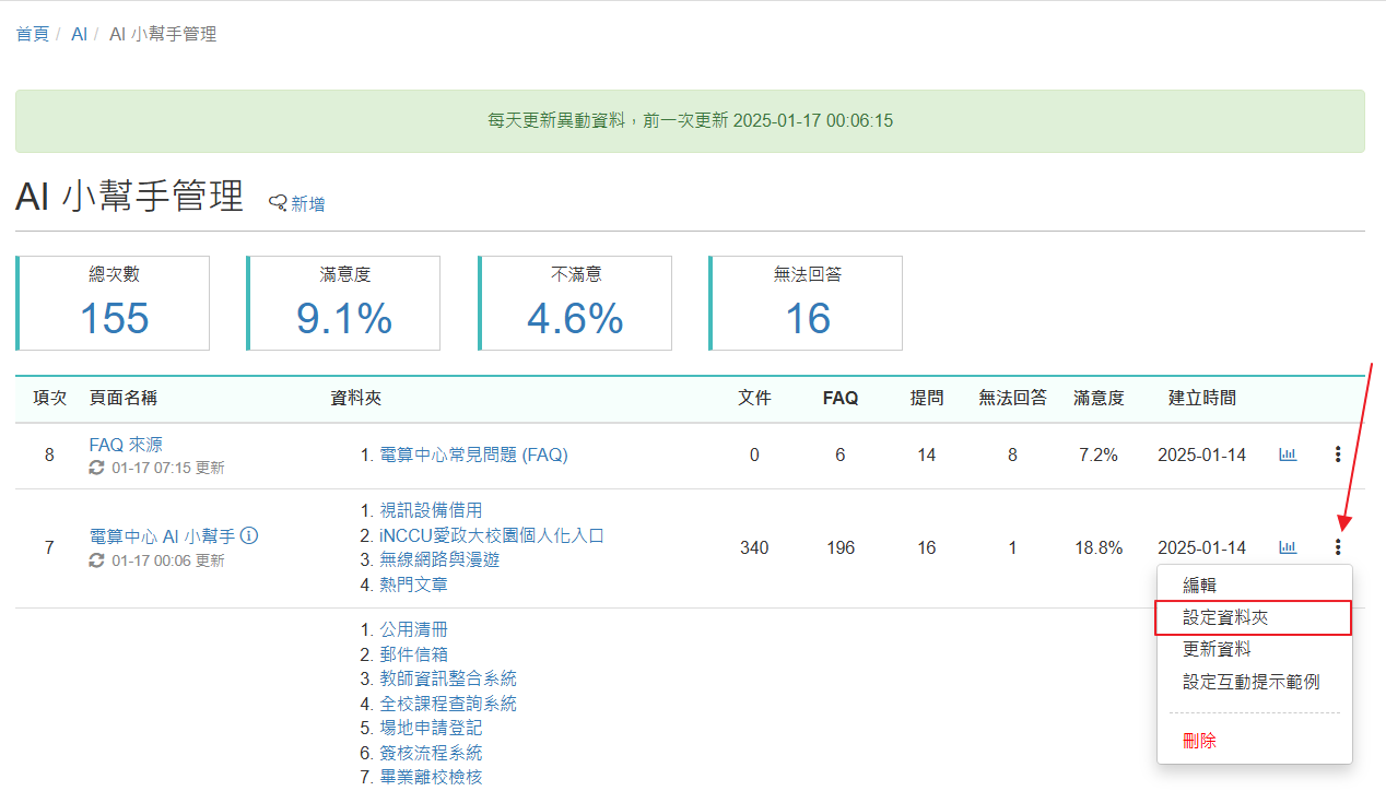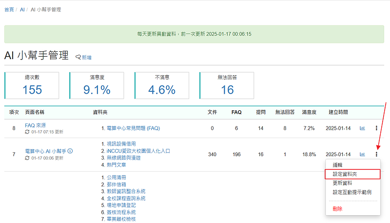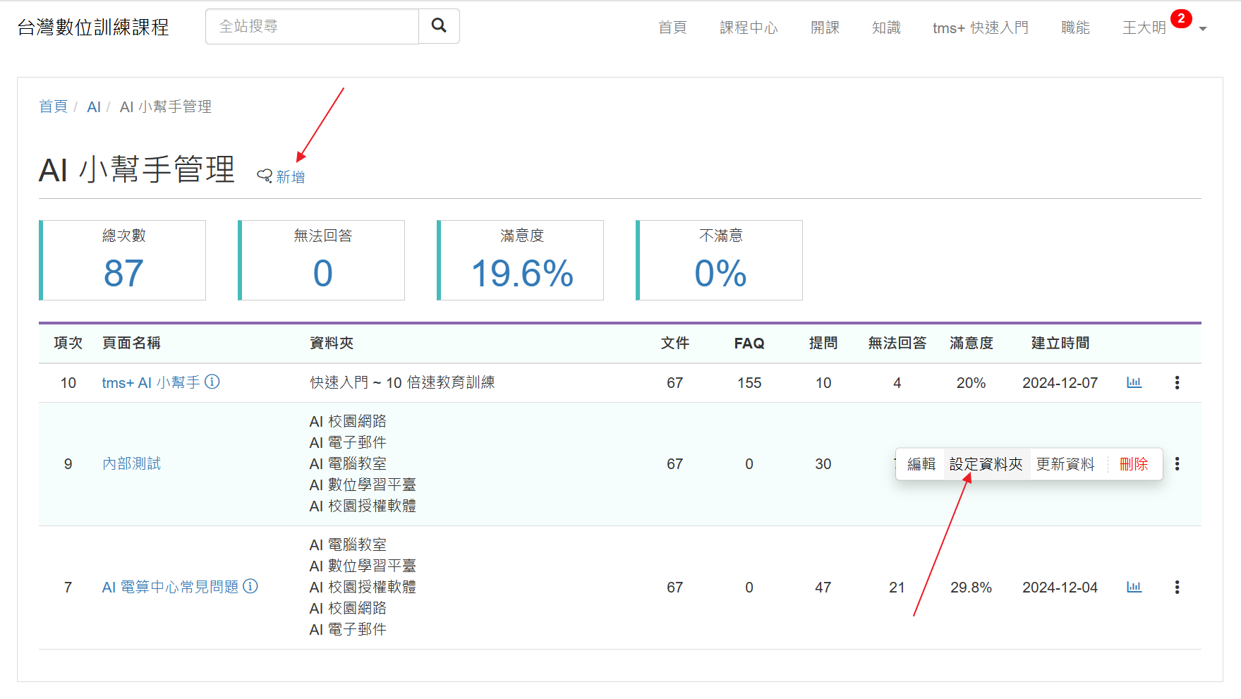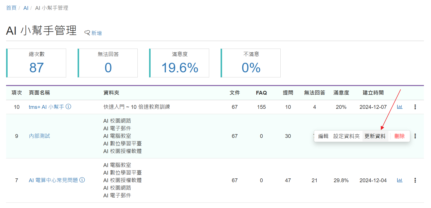 進入 AI 小幫手管理頁面 (網址是 /ai/mgr)