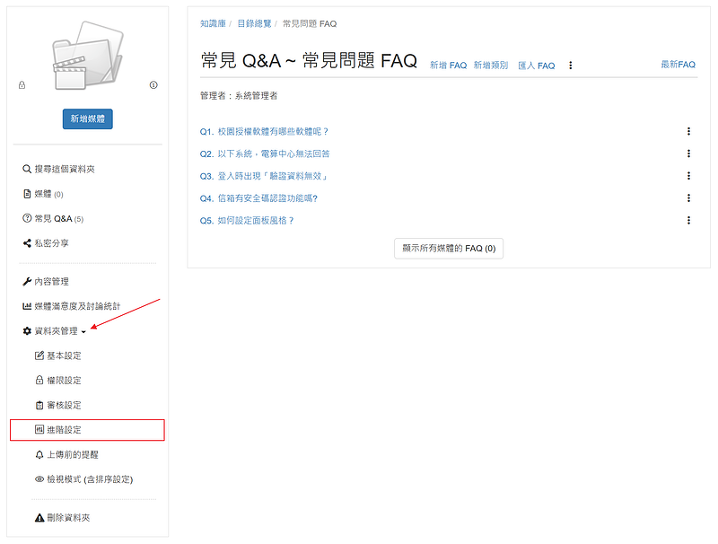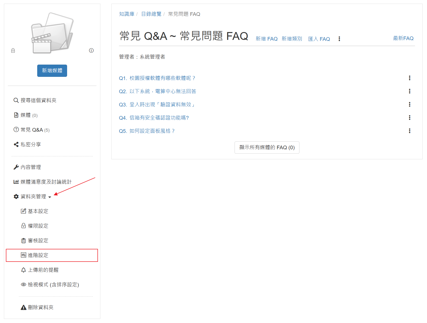 在資料夾的側欄「資料夾管理 / 進階設定」,