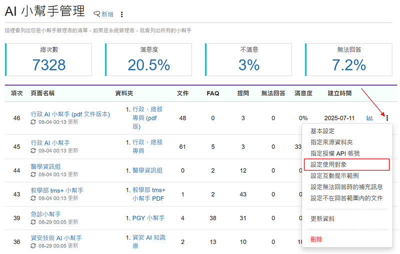每一個 AI 小幫手,可以透過「設定閱讀權限」指定哪些人可以使用。