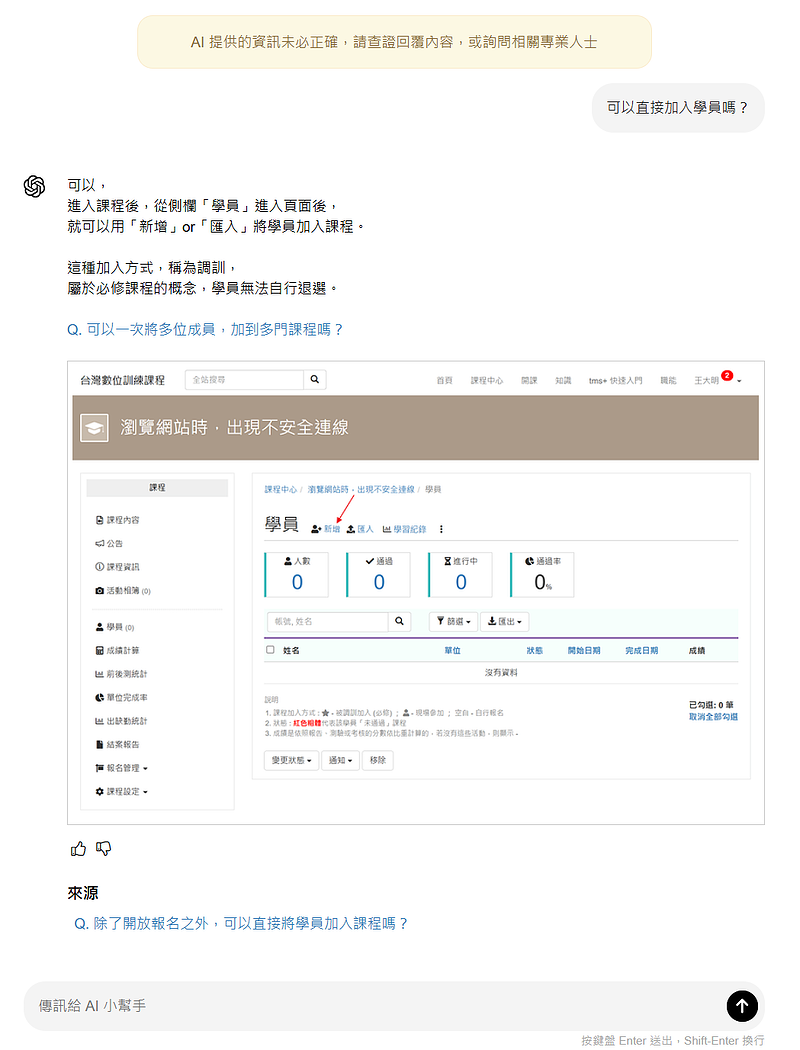輔導方案 ~ 導入 xms+ AI 知識庫