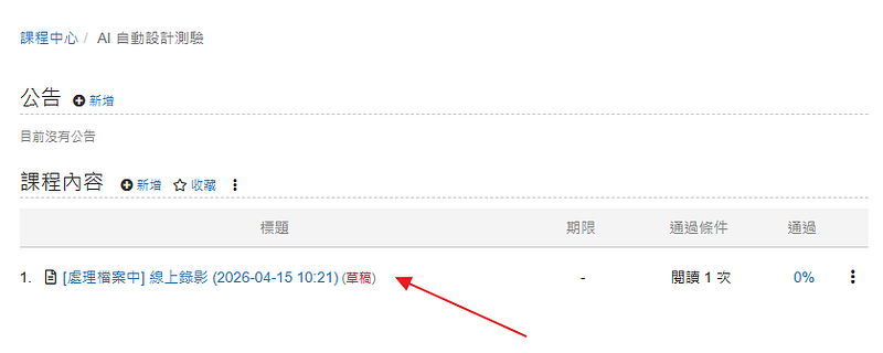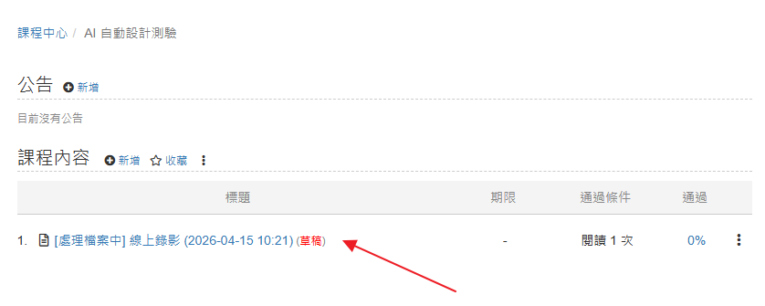結束錄影後,AI 就會接手後續的事情,自動整理影片重點、設計測驗等。