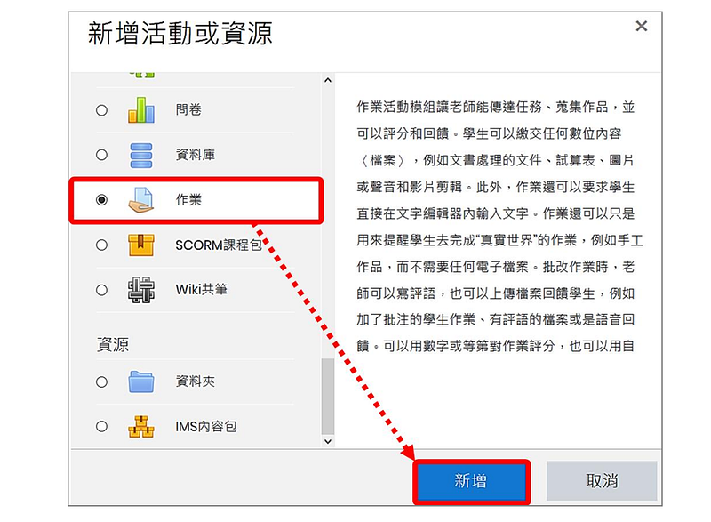 以下以 moodle 學習平台為例,說明如何結合 xms+ 執行「翻轉教室 3.0」的步驟。